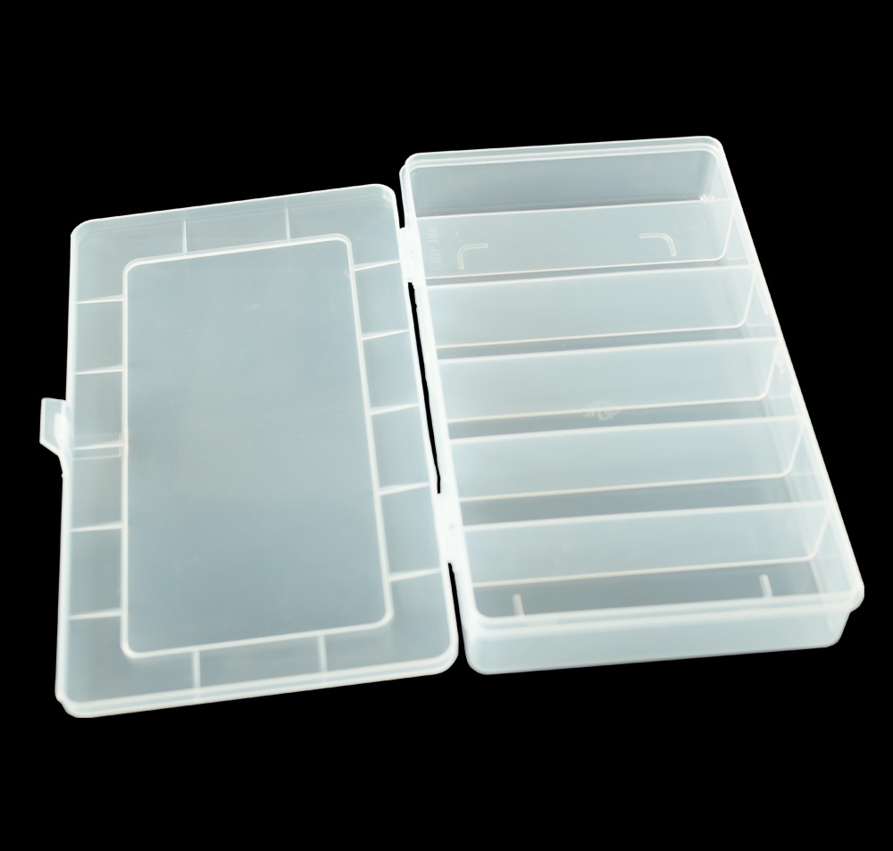 1) 材料:透明PP 2) 柔韌的鉸鏈設(shè)計,易于打開與保存 3) 有可移動的間隔,大小組合可以不同 4) 折疊時可以節(jié)省空間的設(shè)計 5) 廣泛用于電子元件,藥丸,以及魚鉤 魚餌的存儲等行業(yè)